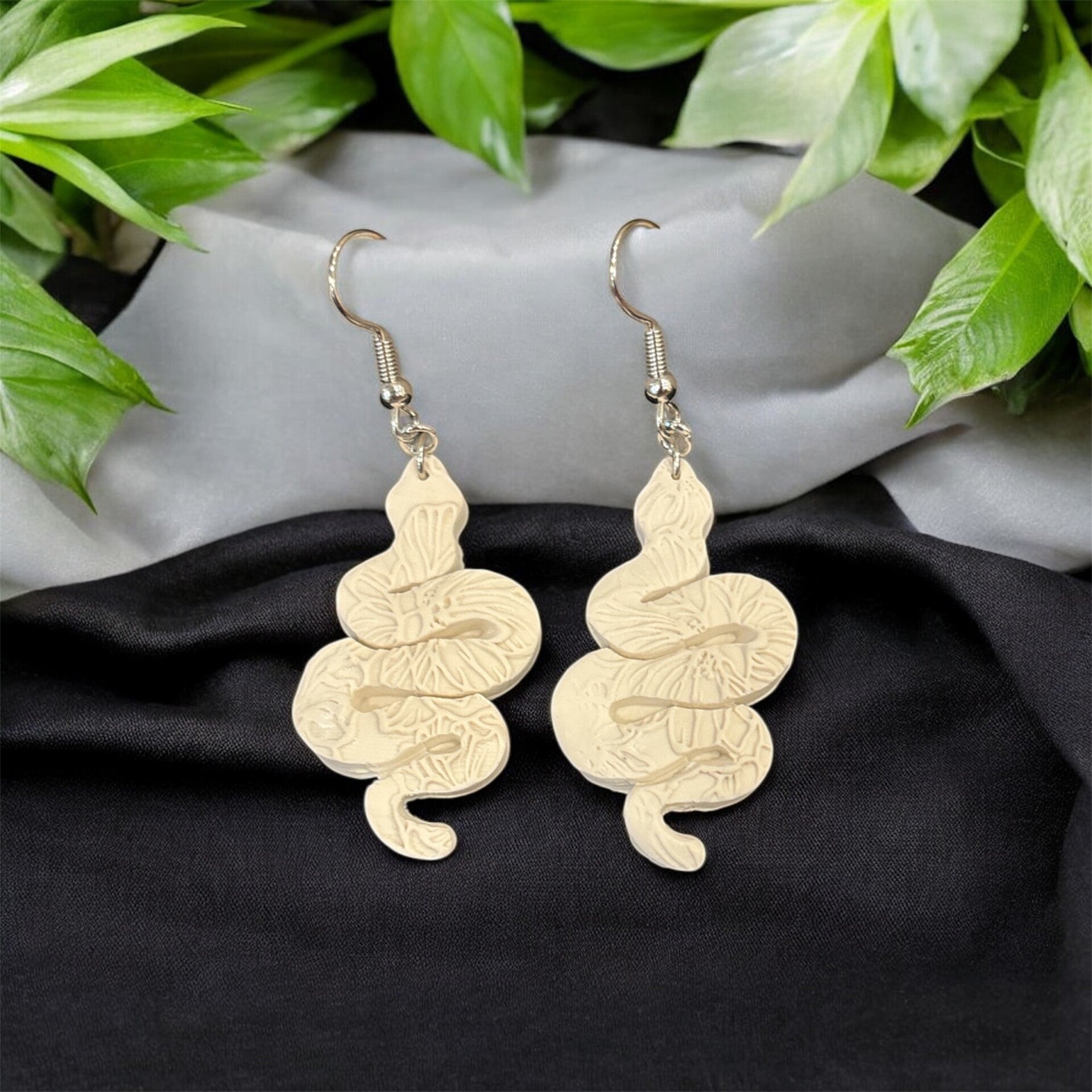 Sleek ivory snakes with intricate floral detailing wind gracefully, bringing a touch of mystique and empowerment to your look.