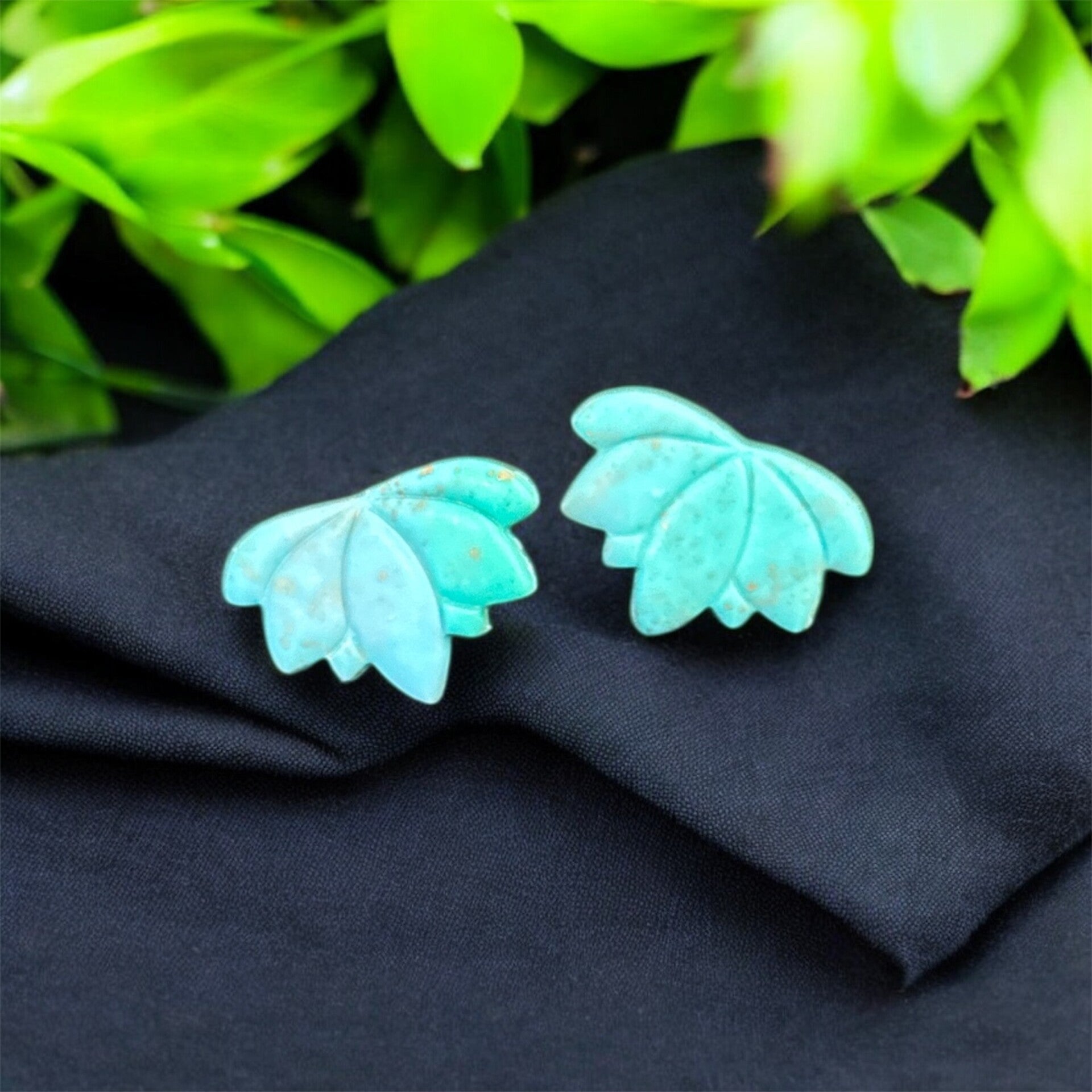Inspired by lotus blossoms floating on serene waters, these turquoise resin studs feature speckled gold accents for a touch of elegance.