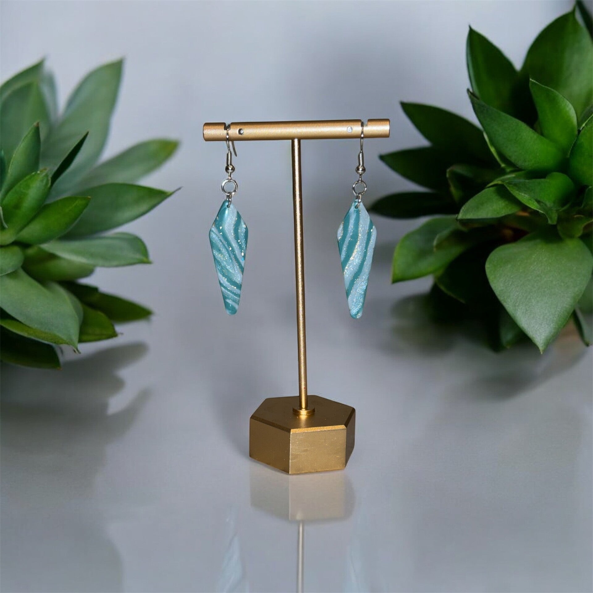 Shaped like ocean-swept shards and streaked with shimmering turquoise and white, these earrings capture the gentle rhythm of crashing waves. Lightweight and full of movement, they bring a splash of sea-inspired serenity to your look.