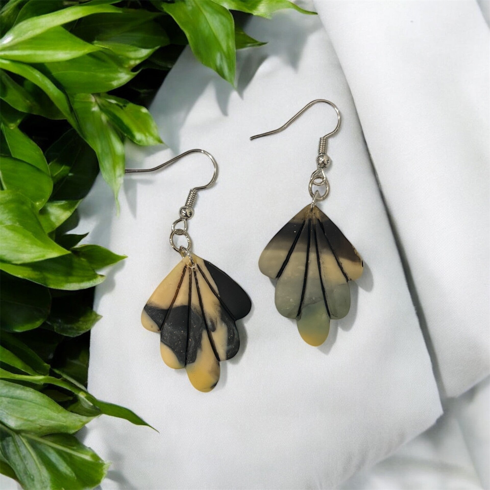 Radiating summer vibes, these fan-shaped earrings blend lemon yellow with soft sky blue for a gentle ombré effect that feels like a warm sunset breeze.